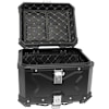 45L storage capacity for anything from helmets to fast foods. A premium padded internal leather-look liner provides insulation and internal protective, featuring storage slots in the lid liner. The lid features a strong key lock mechanism for security, and mounting points at the corners enables additional items to be strapped to the top box.