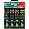 - Set contains 4: 1" x 15' strap and heavy duty rubber handle ratchet