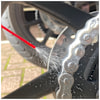 Shake the can well and apply to the full length of the inside of the chain, rotating the wheel slowly by hand. Do not use the motor to rotate the wheel.
