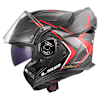 Customers have shared positive reviews of the LS2 Advant X Carbon modular helmet, highlighting its lightweight design, comfort, and versatility. The helmet's 180-degree flip-up feature and secure locking mechanism are particularly praised. Many customers appreciate the quality construction and clear, easy-to-switch visors. Some note that the cheek pads are initially snug but tend to loosen over time. The helmet’s overall value for money, aided by included accessories such as multiple visors and storage bags, is frequently mentioned as a significant advantage.