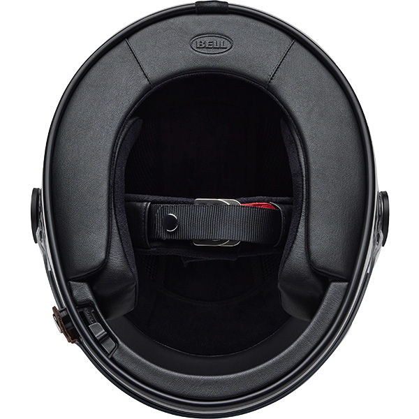 • Padded chinstrap with leather D-ring closure