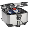 Capable of resisting the bumps and stresses inevitable on off-road journeys, the case comfortably holds 1 modular helmet so you can be ready for any adventure. The friction rotation system for the lid and Adjustable Resistance Hinge System (ARHS), make it possible to adjust the closing speed as desired, avoiding any inconvenience while parked on slopes. Inside the case is an internal lever which allows the case to be secured to the plate, preventing its removal from the outside.