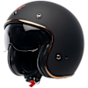 The ABS thermoplastic resin shell covers a multi-density EPS impact liner. The tinted visor can be easily operated with gloves on from either side to shield eyes from the sun, and the micrometric chin strap allows easy and secure fastening.