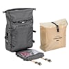 I use a single bag on the back now instead of a top box and can easily carry the lot into work after adding a shoulder strap.