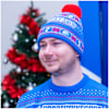 Polyester knit bobble hat with festive Sportsbikeshop design