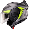 P/J homologated flip-back helmet with hi-impact ABS, anti-scratch visor and integrated sun visor