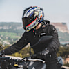 The combination of multiaxial composite shell and multi-density EPS ensures the highest level of protection and exceeds this new standard. The ultra-resistant screen offers an additional level of security to the helmet, thanks to its locking system with "four anchor points", directly inspired by the Race-R Pro GP. The Spartan RS is equipped with a high-performance VZ 300 display. Designed in optical class 1 with variable thicknesses, it thus avoids visual distortions regardless of the viewing angle. The helmet incorporates Pinlock 120 Max Vision film, the most effective anti-fog system on the market. The profile of the Spartan RS has been designed and engineered to limit aerodynamic drag, to minimise buffeting and to reduce extraneous noise at medium and high speeds.