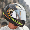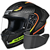 The extra wide, replaceable visor provides an excellent view of the road. An efficient ventilation system, with advanced channelled air intakes on the chin-guard and top of the helmet, ensures maximum comfort on long journeys and in all weather conditions. Stellar comes with an exciting range of features like wind stop and a Pinlock®70 ready visor and graphics integrated onto the spoiler helmet for a striking look.