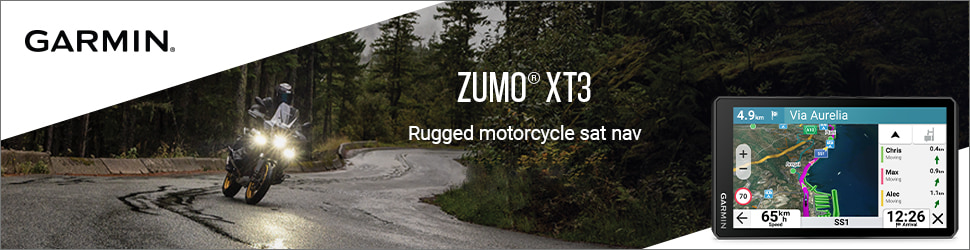 - Start a group ride to see the location of other riders on the Zūmo® XT3 sat nav display; requires pairing with the Tread® smartphone app and cellular connection