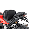 I needed a new small bag for my CBR650R. This one ticked the boxes so I went ahead. Fits really nicely on the back seat. Fitting was simple enough although I needed one or two tie wraps in places. There's more room than you think. I got a 400ml flask of coffee, a 400ml water, a lunch wrap, overnight oats in a tub, an apple, my glasses, a very light overjacket in case of a shower & my phone goes into the lid pouch. Has a rain cover aswell which fits underneath between the bag & base. Great piece of kit.
