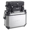 The Givi Trekker Outback range of hard cases is the ideal choice for the serious adventurer/tourer. Available in two sizes, 37ltr and 48ltr, it is possible to combine different sizes on the same bike to take into account the asymmetry created by single side exhausts. They can be bought singly either left or right, or as a single size pair comprising both left and right. Their construction is as rugged as the environments they are designed for, having 1.5mm thick aluminium with dual internal reinforcement and reinforced techno-polymer inserts. The die-cast aluminium latching system securely holds the waterproof, rubber sealed lid which can be either hinged or fully removed for ease.