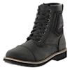 With the protection and durability of a proper riding boot. These boots fit the bill, with more ankle protection than most, but yet comfortable and very warm, but not too hot to walk a good distance, or a long time in.