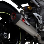 The T304 stainless steel slip-on exhaust system has been dyno developed to ensure it works with the bikes OEM engine settings. Installing the Scorpion system improves throttle response and power delivery, as well as the aesthetics and soundtrack of the motorcycle.
