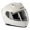 The visor gives me a nice, wide field of view and hasn’t fogged up at all in good weather. I also wear glasses, and they fit in the helmet without any issues, which isn’t always the case with other helmets I’ve tried. The helmet looks really sharp too; the Classic Metal White finish is clean and modern.