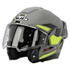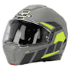 The HJC i100 is a Stylish helmet , the controls/ switches are easily worked for the Flip-up chin guard , vents and tinted sun visor , it arrives with a Pinlock clear visor included and has a smooth matt finish to the outer Advanced Polycarbonate shell .