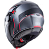 Flip mechanism feels and indeed looks robust as do the click stops on the visor with good peripheral field of vision. No problems wearing glasses if you put them on prior to buckling up.